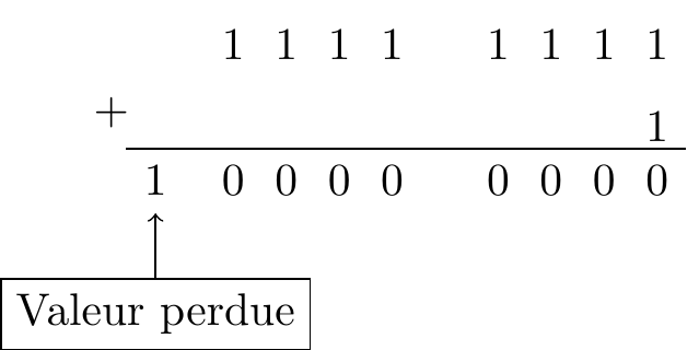 L’entier maximal pouvant être représenté correspond au train de bits de longueur \(n\) composé uniquement de 1.