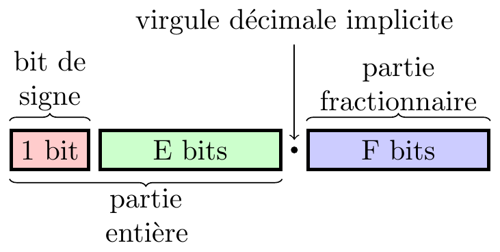\(\LaTeX\) utilise un nombre à virgule fixe signé de 32 bits, avec 16 bits pour la partie fractionnaire, pour calculer les positions des objets. Pour les fontes, \(\LaTeX\) utilise un nombre à virgule fixe signé de 32 bits, avec 12 bits pour la partie fractionnaire.